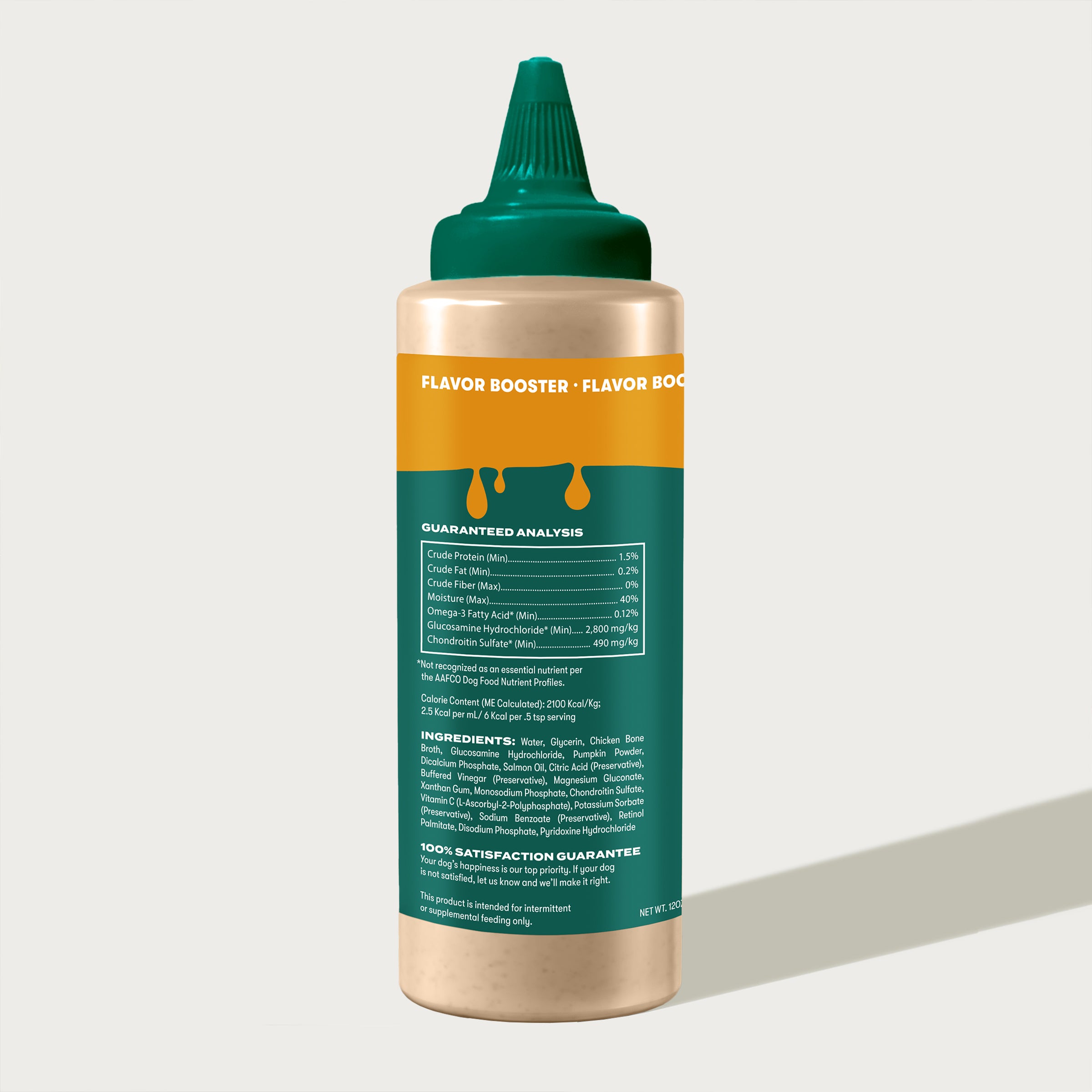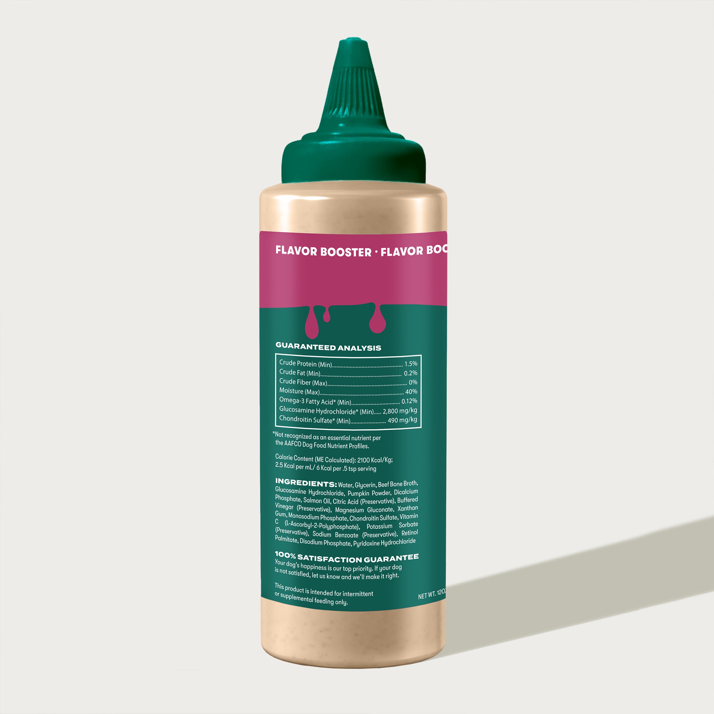 Water, Glycerin, Beef Bone Broth, Glucosamine Hydrochloride, Pumpkin Powder, Dicalcium Phosphate, Salmon Oil, Citric Acid (Preservative), Buffered Vinegar (Preservative), Magnesium Gluconate, Xanthan Gum, Monosodium Phosphate, Chondroitin Sulfate, Vitamin C (L-Ascorbyl-2-Polyphosphate), Potassium Sorbate (Preservative), Sodium Benzoate (Preservative), Retinol Palmitate, Disodium Phosphate, Pyridoxine Hydrochloride