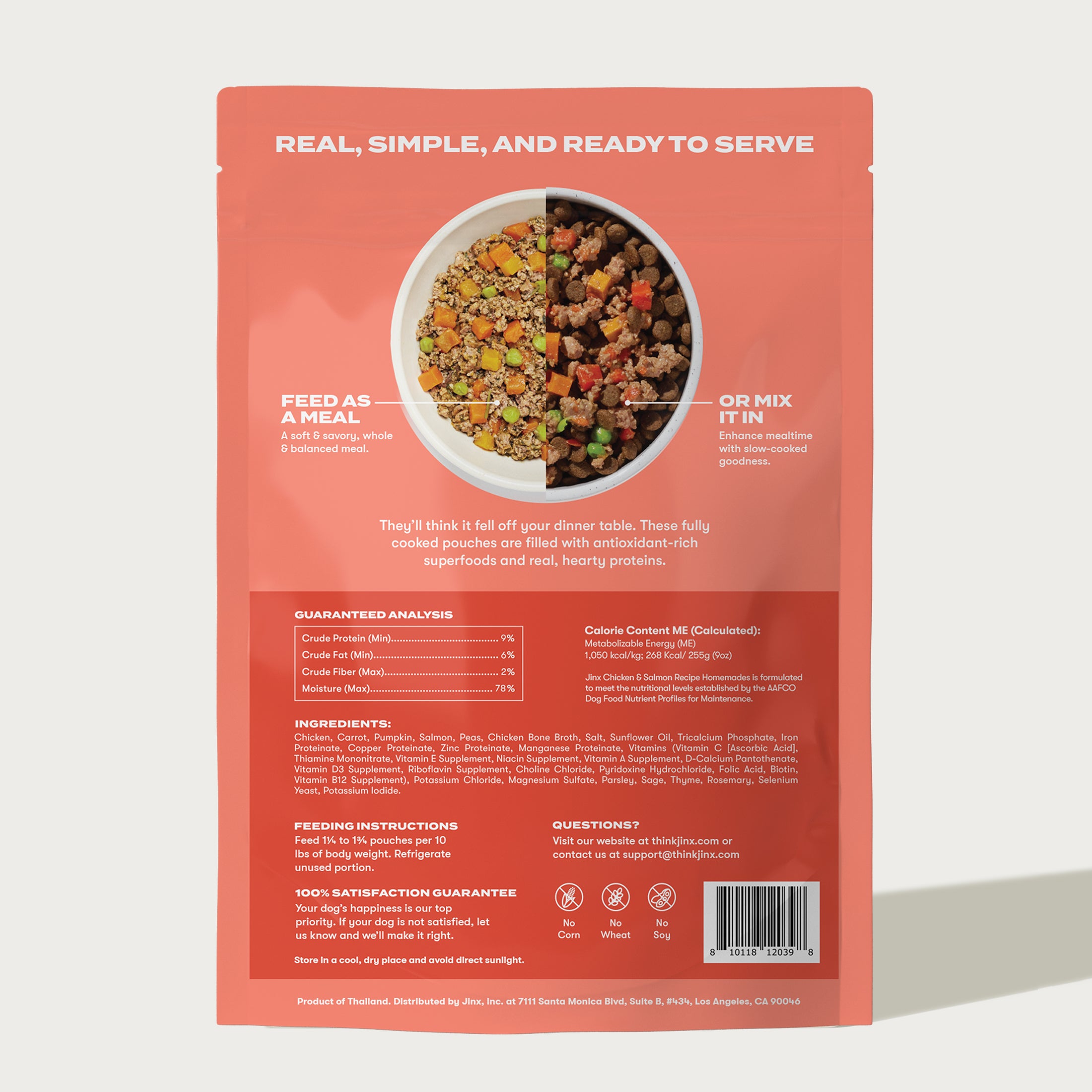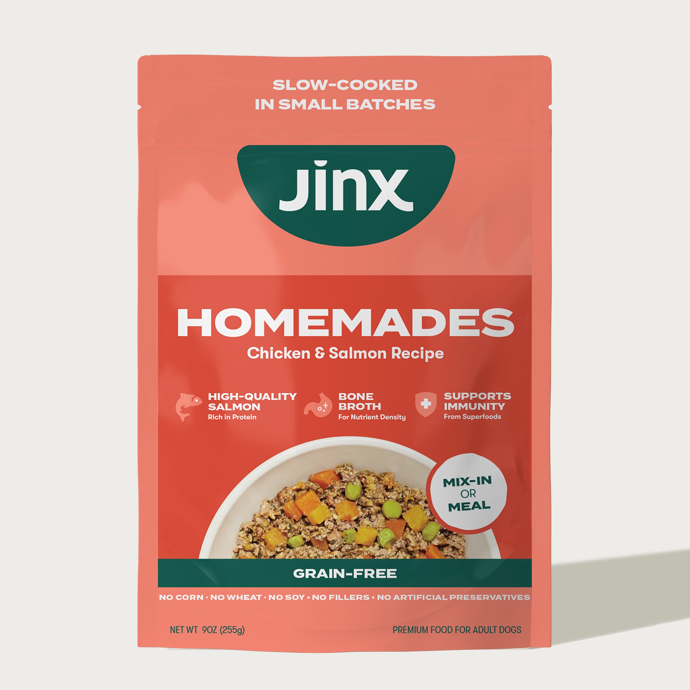 Our Chicken & Salmon Homemades wet food recipe gives your picky dog the taste and benefits of a home cooked meal, without the hassle. This soft and savory recipe is formulated by experts to ensure your dog maintains a strong foundation of health — with a great taste that can only come from using real, high quality ingredients like real chicken and salmon, carrots, pumpkin and bone broth. Use as a flavorful and nutrient-packed addition to any diet or serve as a complete and balanced meal for your adult dog.